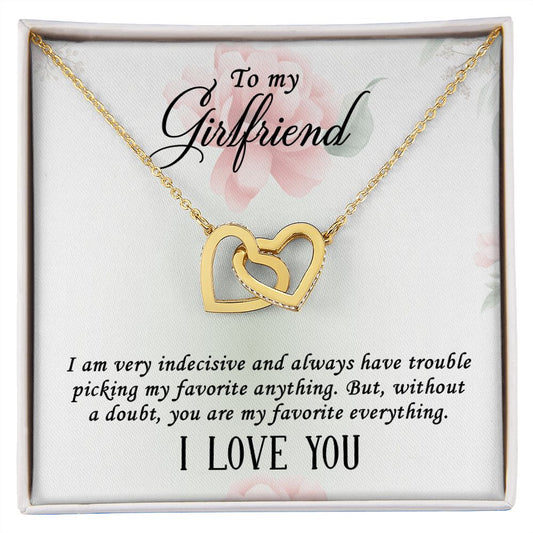 To My Girlfriend - My Favorite Everything - Interlocking Hearts White & Gold Necklace
